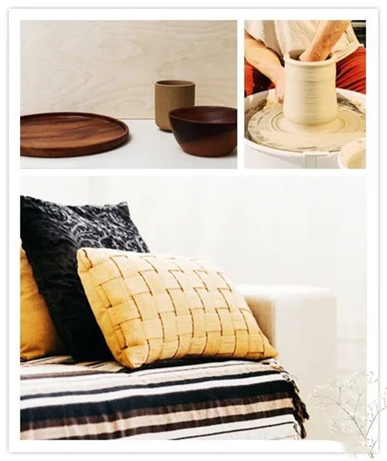 宅在家除了網(wǎng)購和追劇,也促使家中出現(xiàn)了更多DIY的手做成果,繪畫、縫紉、捏陶、編織…等。藤、麻等植物纖維做成的編織品,可展現(xiàn)各地民俗文化的特色,并直接感受來自大自然的天然紋理材質(zhì)。另外毛線除了織衣服外,與樹枝、石頭、玻璃瓶碰撞出的妙搭效果,各種創(chuàng)作讓每一個家居空間更有魅力。