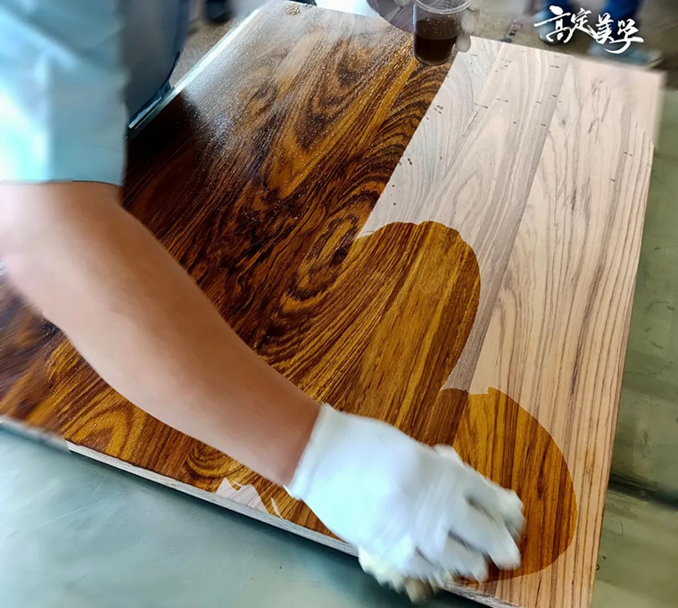 運用納米科技新材料,表現出高著色強度特征,光澤穩定和優異的透明度,顏料中的納米粒子滲透于木質中,有效修復家具木材拼接時的顏色差異現象,使其著色后顏色達到完美一致性。