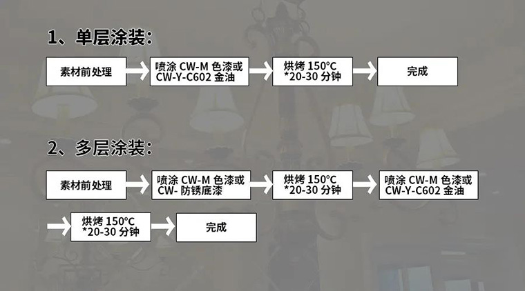 為了緩解客戶的環保壓力,大寶漆持續在水性金屬烤漆的領域內加強研發力度,先后推出CW-Y-C602系列烘烤型水性金屬罩光金油、CW-M系列烘烤型水性金屬色漆,主要用于各類金屬制品的涂裝,如:鐵、鋅合金、銅、鋁等材質的制品,助力客戶產品油轉水,在保持溶劑型金屬烤漆優異的使用性能同時,解決了現有溶劑型金屬烤漆VOCs偏高、施工現場氣味大的問題。