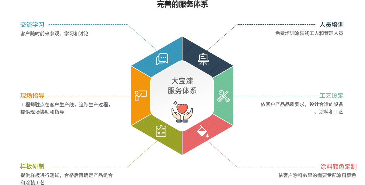 同時,大寶漆還專門指派熟悉產(chǎn)品施工及產(chǎn)品應(yīng)用的工程服務(wù)人員,長期進(jìn)駐服務(wù)網(wǎng)點,為客戶提供點對點式專業(yè)服務(wù),包括調(diào)色打板、樣品制作、駐廠指導(dǎo)、問題解決、人員培訓(xùn)、售后服務(wù)等,并可在24小時內(nèi)趕赴現(xiàn)場給予客戶專業(yè)的技術(shù)指導(dǎo)服務(wù)。