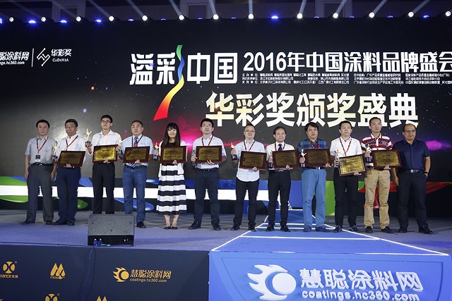 2016年7月7日,由慧聰主辦的“溢彩中國”——2016年中國涂料品牌盛會暨“華彩獎”(第十屆)影響力品牌評選頒獎盛典在北京釣魚臺國賓館隆重舉行。來自全國各地涂料企業代表、渠道代理商、家具企業代表、行業專家、以及眾多新聞媒體記者共500余人,共同參與了“溢彩中國”2016年中國涂料品牌盛會暨“華彩獎”影響力品牌評選頒獎盛典。