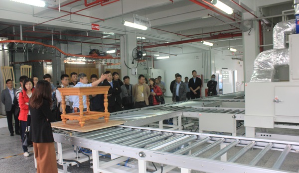 在大寶國際陳賀生董事長的陪同下,陳國都董事長等一行分別對東莞大寶化工安管中心、智能涂裝線、后花園、色板中心、國內(nèi)市場展廳等進(jìn)行細(xì)致的參觀,陳賀生董事長為大家講解廠區(qū)各部分規(guī)劃的同時,還與陳國都董事長就產(chǎn)品開發(fā)、市場開拓等領(lǐng)域問題進(jìn)行親切的溝通交流。
