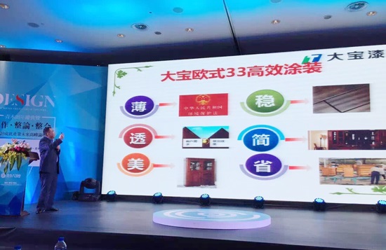 涂料作為木器產業(yè)鏈的下游產業(yè),與家具行業(yè)有著天然的聯(lián)系。作為青木大講堂戰(zhàn)略合作伙伴、木制品涂裝工藝顧問,大寶漆不負所望,為大會帶去了“大寶漆定制家具涂裝解決方案”即大寶歐式涂裝三三專案。黃文敏高專從大寶漆的特點與優(yōu)勢入手,突出了歐式涂裝所具備的“薄、透、美、穩(wěn)、簡、省”等特點。
