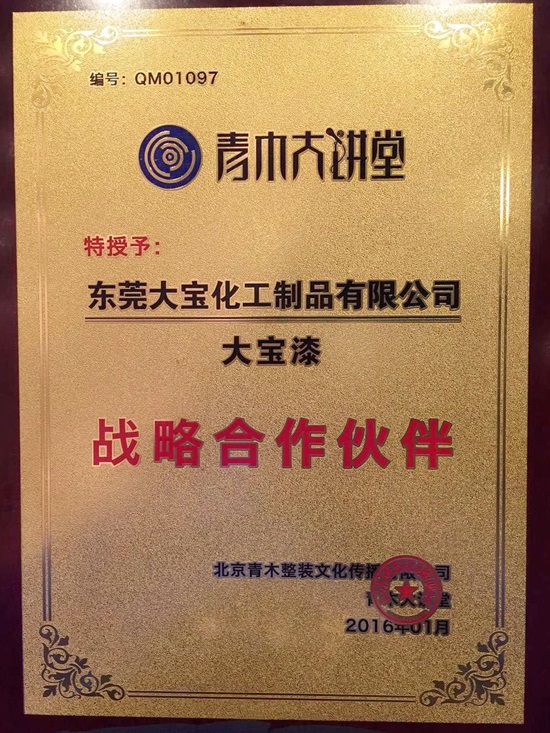 東莞大寶化工葉子琛執(zhí)行經理等代表大寶漆應邀參加大會,東莞大寶化工黃文敏高專向大會作“歐式工藝,創(chuàng)新價值”的主題演講,受到大會的關注,同時大寶漆成為青木整裝“戰(zhàn)略合作伙伴”,繼2015年后大寶漆再次榮膺青木大講堂“木制品涂料工藝榮譽顧問”。