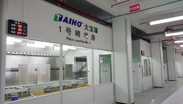 大寶智能化水性涂裝線,總投資上千萬元人民幣,整個涂裝線設計巧妙、設備先進,集智能化、多功能化、系統化、規?;扔谝惑w,產線面積超過2000㎡,是涂料界首家大規模的水性涂裝線,可以為家具客戶提供全天候、全方位高效、省時省力的水性涂裝解決方案。