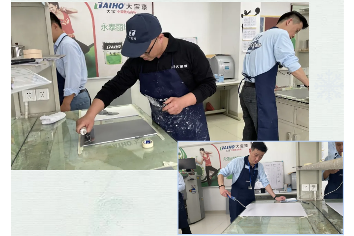 藝術(shù)涂料培訓(xùn)采用理論與實踐相結(jié)合,秉承“學(xué)完即會”的宗旨,使參訓(xùn)人員學(xué)會藝術(shù)涂料施工技能,掌握藝術(shù)涂料產(chǎn)品銷售技巧。培訓(xùn)采用教練技術(shù)進行,即第一步:講給學(xué)員聽,第二步:做給學(xué)員看,第三步:學(xué)員做給老師看,第四步:進行指導(dǎo)和糾正。通過學(xué)習(xí)后,學(xué)員學(xué)會制作3D銀箔、絲綢幻彩、三色珠光、米蘭絲絨、天然彩陶砂、無機灰泥、貝殼絲絨、雅晶石、天鵝絨和2021年的新效果:清水混凝土等工藝效果。