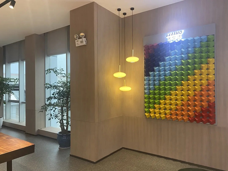 色彩中心陳列的色板涵蓋木器涂料、工業(yè)涂料、建筑涂料..等,以期讓觀者有難忘的色彩及空間體驗(yàn),但色彩變化過(guò)多易引起視覺(jué)疲勞進(jìn)而達(dá)不到突出醒目的效果,因此大寶設(shè)計(jì)團(tuán)隊(duì)秉持細(xì)致優(yōu)雅、和諧唯美的色彩美學(xué),將色彩與木質(zhì)的融合呼應(yīng)得淋淋盡致,創(chuàng)造出與客戶有共鳴的故事。