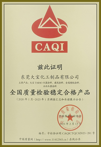 “提振消費(fèi)信心”,為推動(dòng)高質(zhì)量發(fā)展提供動(dòng)力。一年一度的“3·15” 消費(fèi)者權(quán)益日來(lái)臨之際,大寶漆憑借過(guò)硬的產(chǎn)品和服務(wù)質(zhì)量,再次榮獲中國(guó)質(zhì)量檢驗(yàn)協(xié)會(huì)頒發(fā)的“全國(guó)質(zhì)量檢驗(yàn)穩(wěn)定合格產(chǎn)品”、“全國(guó)涂料行業(yè)質(zhì)量領(lǐng)先企業(yè)”、“全國(guó)涂料行業(yè)質(zhì)量領(lǐng)先品牌”多項(xiàng)權(quán)威認(rèn)證。