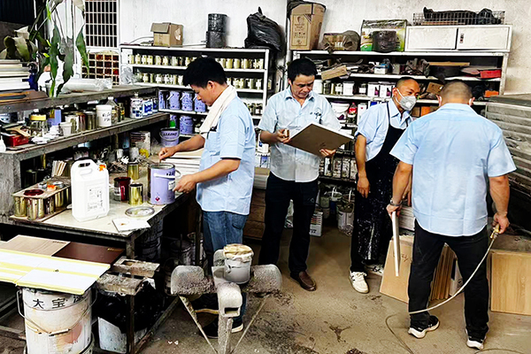 理論課程后,趙副理帶領大家投入色板制作實戰。從白胚檢查、砂光處理,到底色施工、底漆噴涂、修色及面漆完工,每一個環節都結合產品特性與配比要求進行實操演練,幫助大家真正掌握完整工藝流程,提升在實際服務中的應對能力。