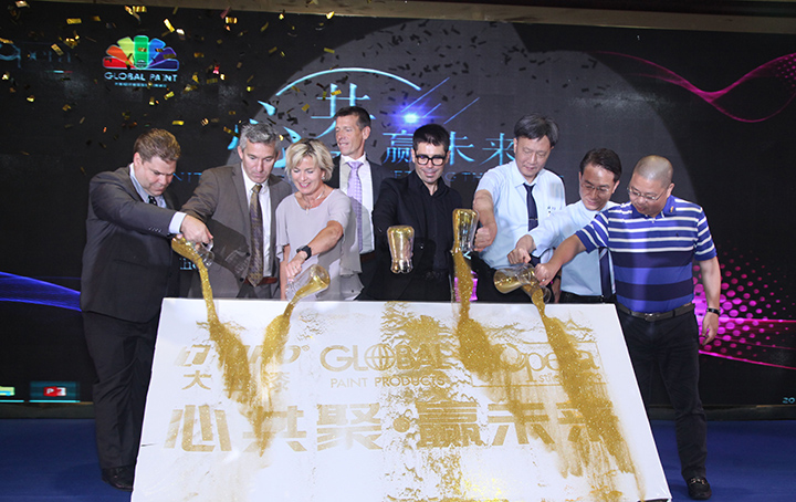 最后,大寶國(guó)際董事長(zhǎng)陳賀生、經(jīng)銷事業(yè)部葉子琛副總經(jīng)理、荷蘭Global paint涂料公司代表、L’opera進(jìn)口藝術(shù)涂料代表及眾多嘉賓一起舉行了新品發(fā)布啟動(dòng)儀式。