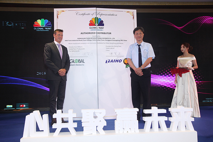 隨后,大寶國(guó)際陳賀生董事長(zhǎng)與Global paint總裁Kees Willems上臺(tái)簽約,雙方正式建立全面、深入的戰(zhàn)略合作伙伴關(guān)系。