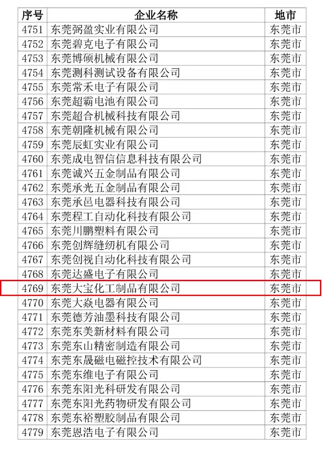 12月11日,公示的廣東省2017年第二批擬認定國家高新技術企業(yè)名單,東莞大寶化工再次通過“高新技術企業(yè)”認定,是繼2011年被認定為高新技術企業(yè)后第三次通過認定。它不僅標志著大寶化工的研發(fā)創(chuàng)新工作邁上新的臺階,也表明大寶化工的自主研發(fā)能力和創(chuàng)新能力均在涂料行業(yè)中處于前列!