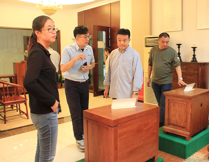 到訪領導一行還參觀了東莞大寶化工現代化的廠房設備、智能化涂裝線、一流的中央實驗室和展示家具漆產品完美施工效果的色板中心等地,增進了彼此的了解和進一步合作的信心。針對“油改水”問題,工作人員向參訪人員介紹了大寶漆水性漆的工藝和質量控制情況,詳細回答了馬總、李總一行對智能涂裝線的提問。考察人員對大寶漆先進的生產管理和環保理念給予了高度評價。