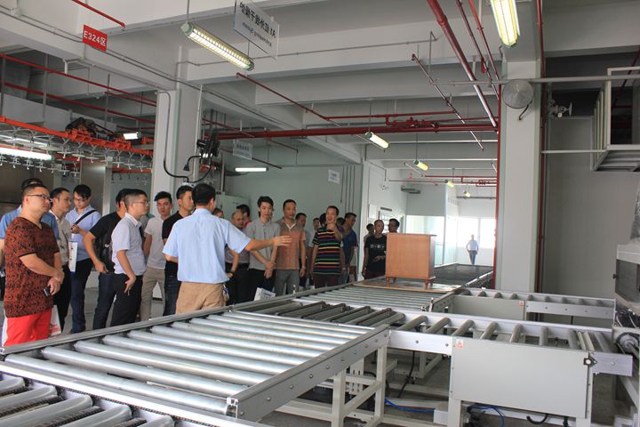 在大寶化工工作人員的陪同下,青家協(xié)一行先后參觀了中央實(shí)驗(yàn)室、4C元素店、智能涂裝測試線、色板中心、后花園和安管中心。在色板中心參觀時(shí),家具企業(yè)家們紛紛慨嘆大寶漆精湛的施工工藝和優(yōu)越的品質(zhì),表示對大寶漆早有耳聞,今日一見,更是加強(qiáng)了與大寶漆合作的意念。