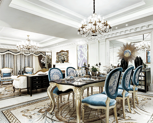 法式風格,即指法蘭西國家的建筑和家具風格,主要包括法式巴洛克風格、洛可可風格、新古典風格、帝政風格等,是歐洲家具和建筑文化的頂峰。法式建筑十分推崇優雅、高貴和浪漫,它是一種基 于對理想情景的考慮,追求建筑的詩意、詩境,力求在氣質上給人深度的感染。