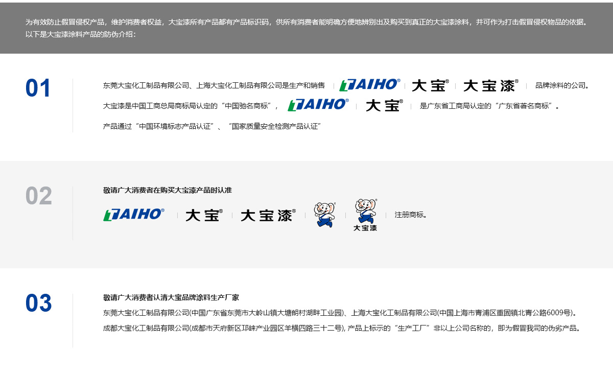 敬請廣大消費者在購買大寶漆產品時認準